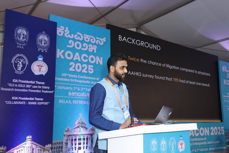 I wanted to establish my clinic as a place where people were truly cared for, not just treated. And so I started my clinic practice at 'Ortho Med Centre' in Jayanagar, Bangalore. The aim of my clinic team is to provide not only the highest quality orthopaedic care but also a space where every person is treated with the same attention and compassion we would give to our own loved ones.
